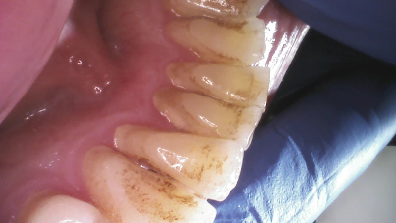 Zdjęcie przed i po wykonaniu skalingu/piaskowania